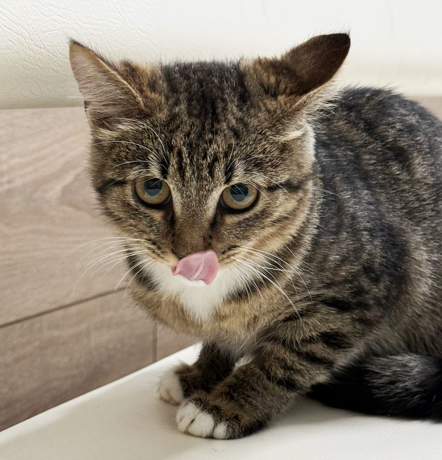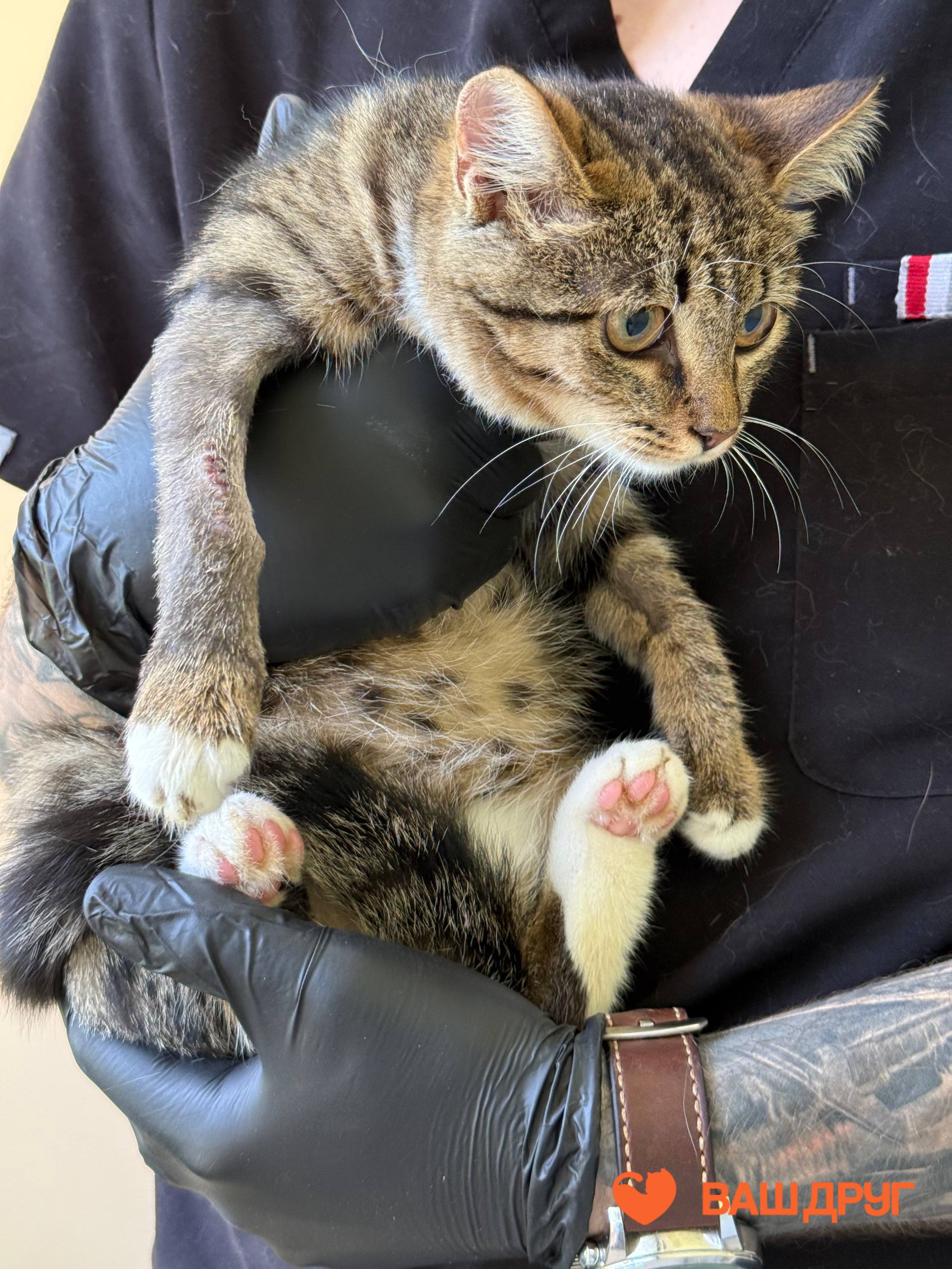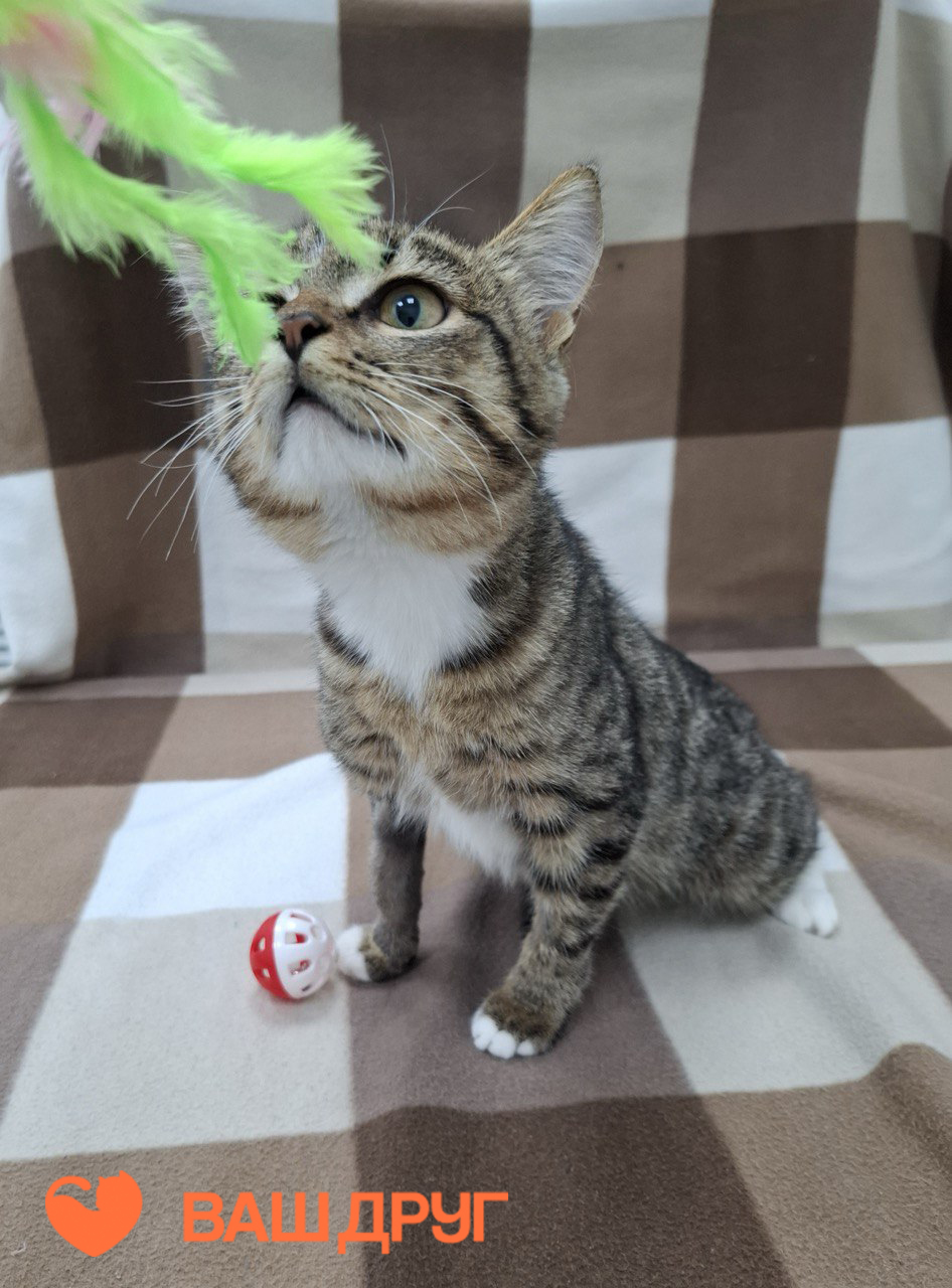Очень ласковая, терпеливая зайка. Одна из котят, спасенных с закрытой территории магазина. Здорова, но был обнаружен перелом передней лапки.