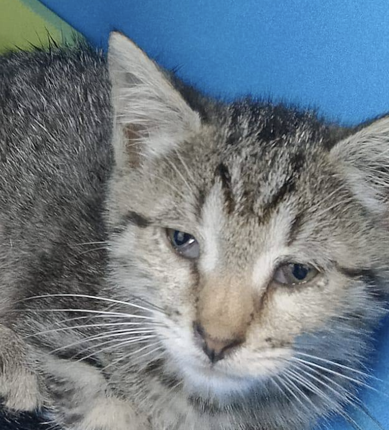 Это Меган (или просто Мегги). Мегги была найдена около подвала жилого дома в не очень хорошем состоянии. Мегги оказала настоящее сопротивление волонтеру Юле при попытке ее отловить. Но несмотря на и вопреки плохому самочувствию, Мегги была доставлена в клинику, где начала проходить обследование. Оказалось, что Мегги совсем малышка и ей примерно 2-3 месяца.